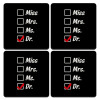 Miss, Mrs, Ms, DR, ΣΕΤ 4 Σουβέρ ξύλινα τετράγωνα (9cm)