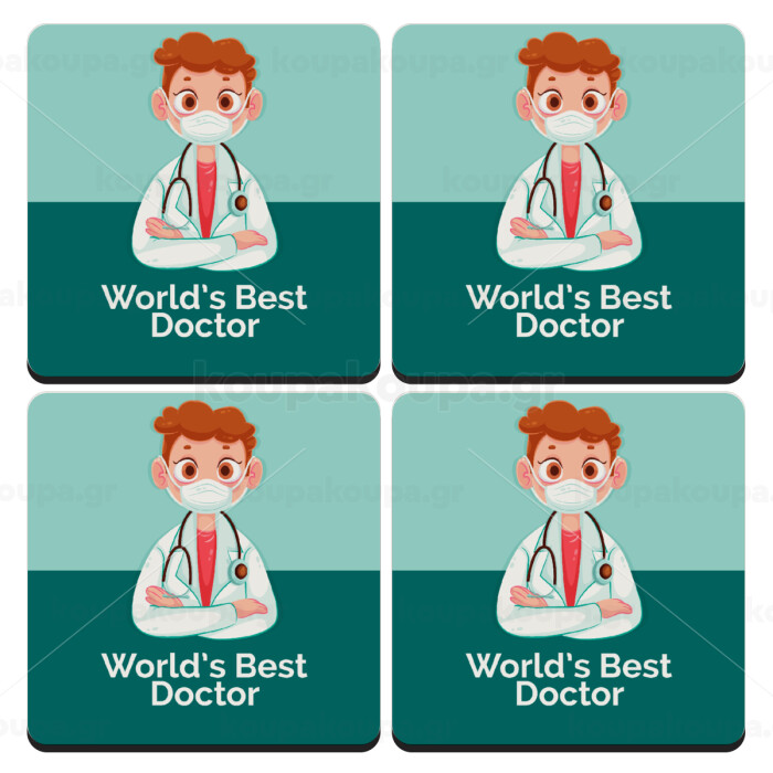 World's Best Doctor, ΣΕΤ 4 Σουβέρ ξύλινα τετράγωνα (9cm)