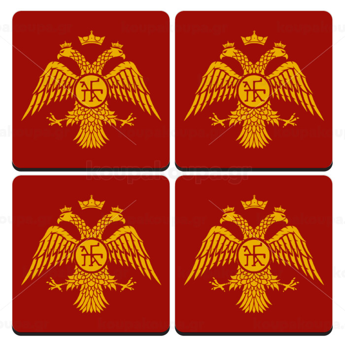 Byzantine Empire, ΣΕΤ 4 Σουβέρ ξύλινα τετράγωνα (9cm)