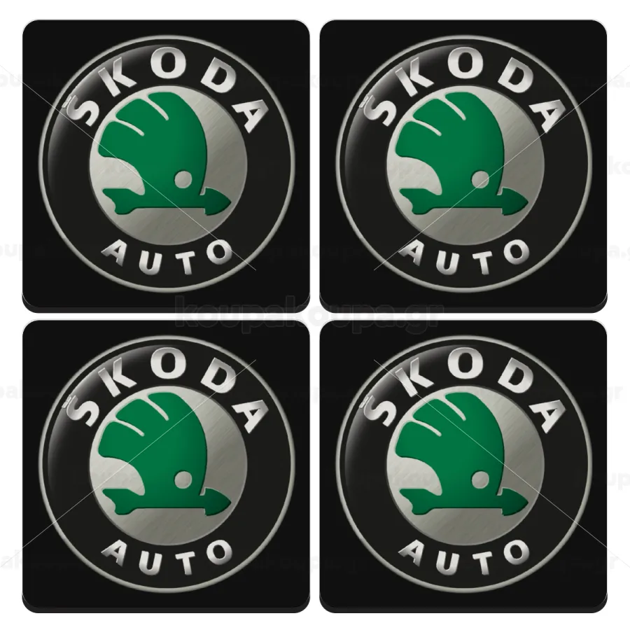 SKODA, ΣΕΤ 4 Σουβέρ ξύλινα τετράγωνα (9cm)