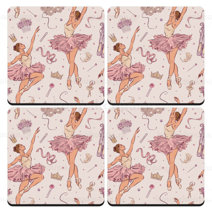 Ballet Dancer, ΣΕΤ 4 Σουβέρ ξύλινα τετράγωνα (9cm)