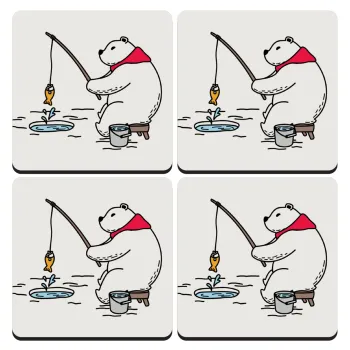 Bear fishing, ΣΕΤ 4 Σουβέρ ξύλινα τετράγωνα (9cm)