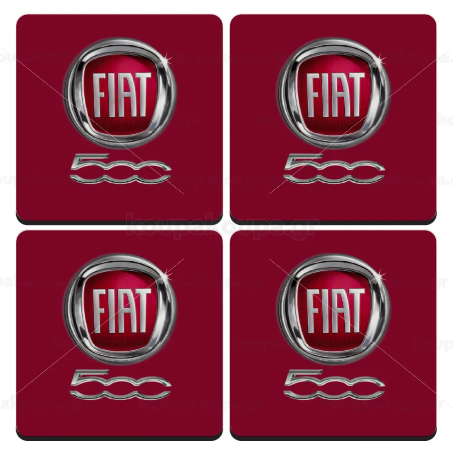 FIAT 500, ΣΕΤ 4 Σουβέρ ξύλινα τετράγωνα (9cm)