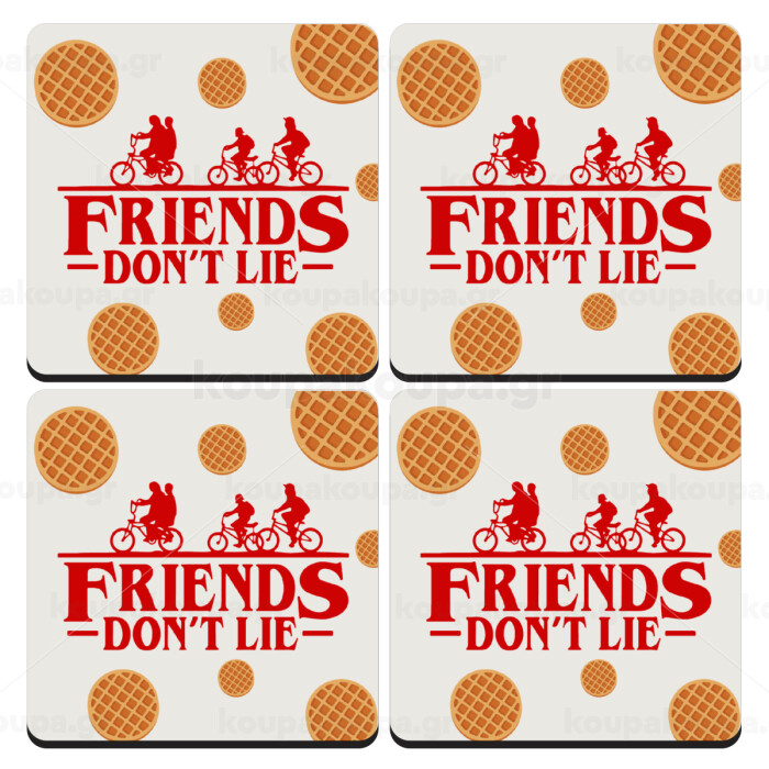 Friends Don't Lie, Stranger Things, ΣΕΤ 4 Σουβέρ ξύλινα τετράγωνα (9cm)