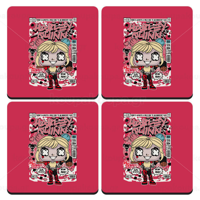 Harley Quinn (Χάρλεϊ Κουίν), ΣΕΤ 4 Σουβέρ ξύλινα τετράγωνα (9cm)
