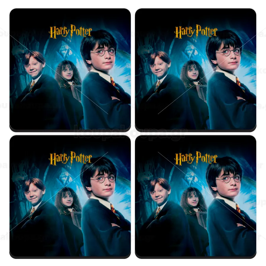 Harry potter and the philosopher's stone, ΣΕΤ 4 Σουβέρ ξύλινα τετράγωνα (9cm)