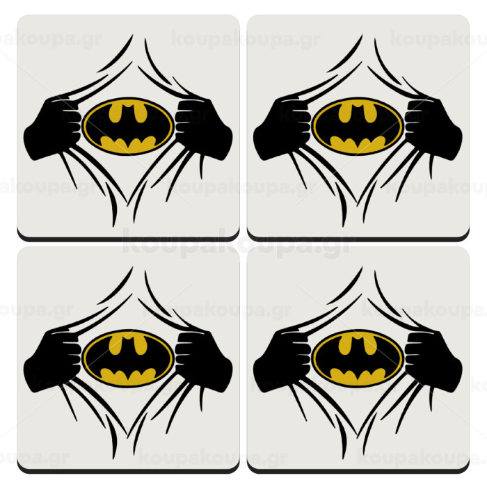 Hero batman, ΣΕΤ 4 Σουβέρ ξύλινα τετράγωνα (9cm)