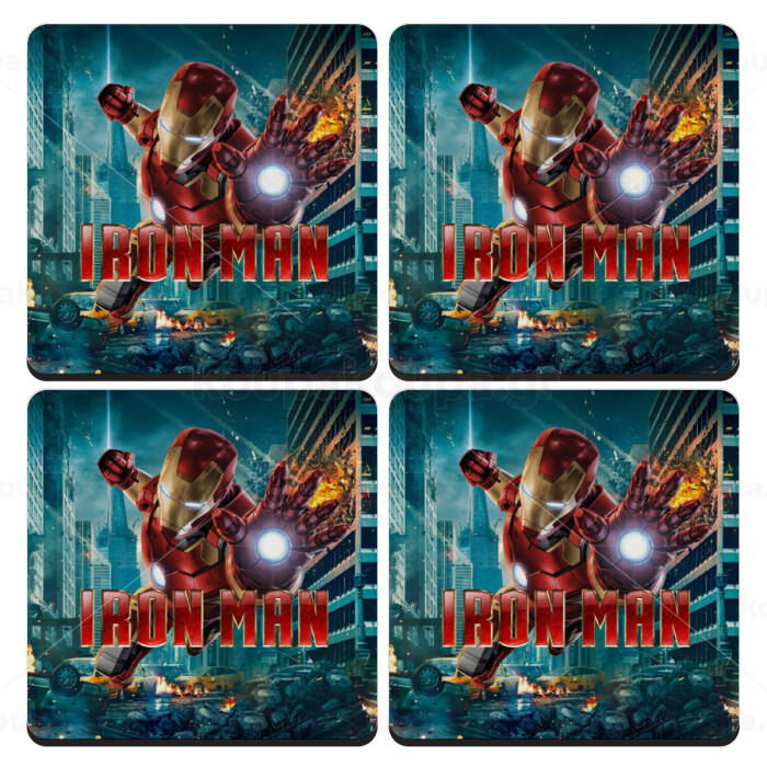 Ironman, ΣΕΤ 4 Σουβέρ ξύλινα τετράγωνα (9cm)