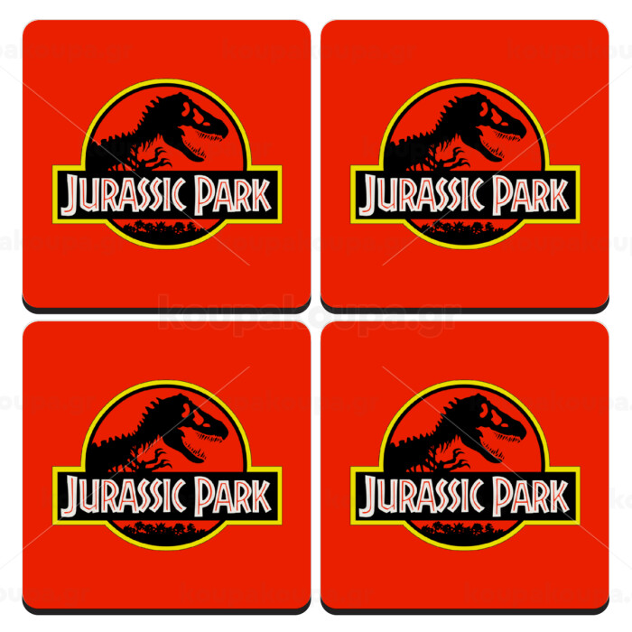 Jurassic park, ΣΕΤ 4 Σουβέρ ξύλινα τετράγωνα (9cm)