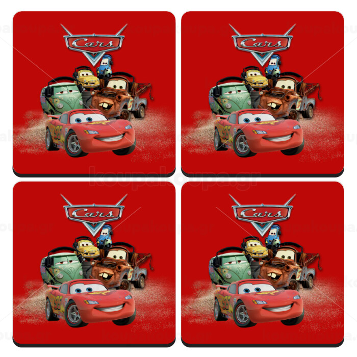 Αυτοκίνητα, ΣΕΤ 4 Σουβέρ ξύλινα τετράγωνα (9cm)
