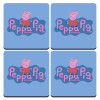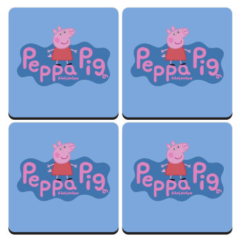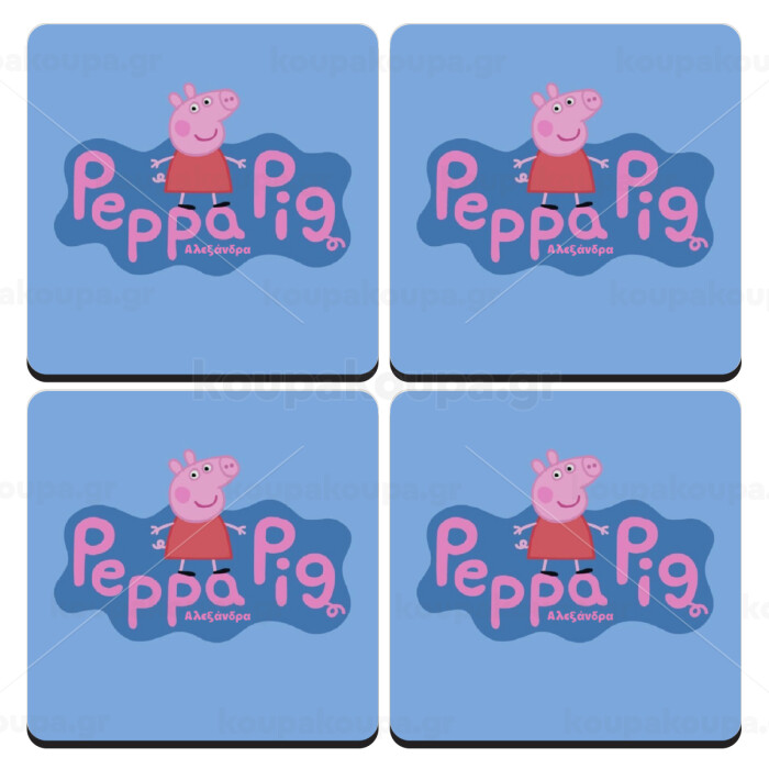 Πέππα το γουρουνάκι μπλε με όνομα, ΣΕΤ 4 Σουβέρ ξύλινα τετράγωνα (9cm)