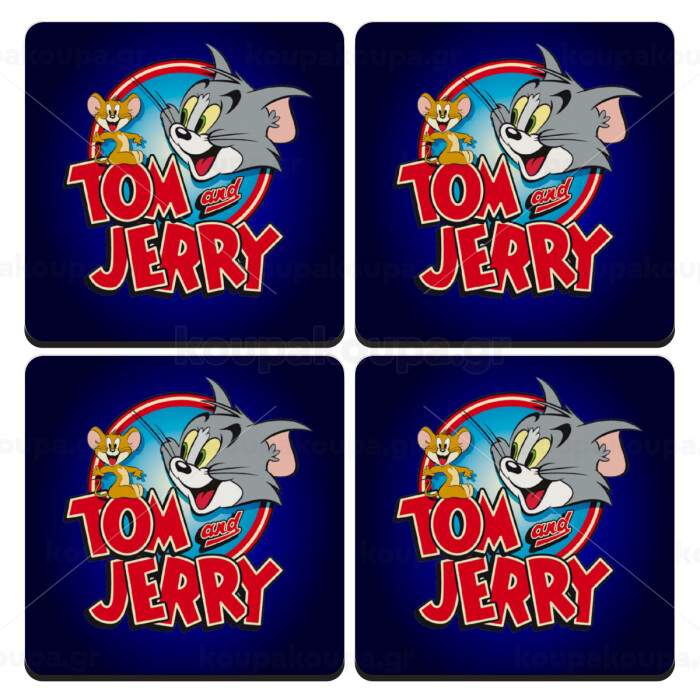 Tom and Jerry, ΣΕΤ 4 Σουβέρ ξύλινα τετράγωνα (9cm)
