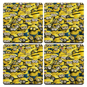 All the minions, ΣΕΤ 4 Σουβέρ ξύλινα τετράγωνα (9cm)