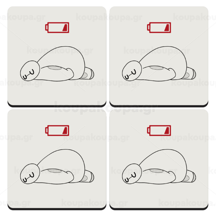 Baymax battery low, ΣΕΤ 4 Σουβέρ ξύλινα τετράγωνα (9cm)