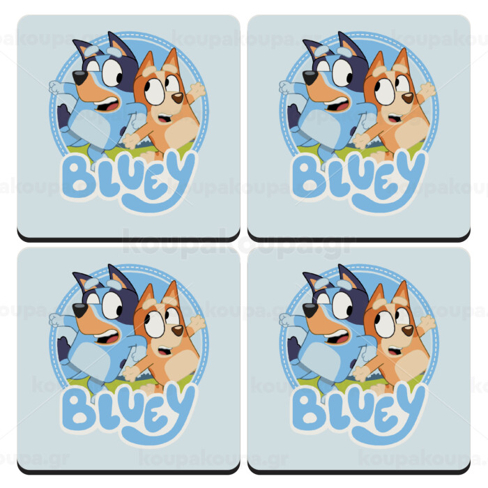 Μπλε, ΣΕΤ 4 Σουβέρ ξύλινα τετράγωνα (9cm)