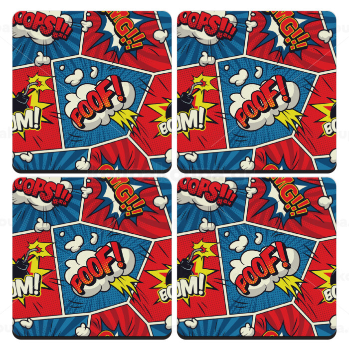 Comic boom!, ΣΕΤ 4 Σουβέρ ξύλινα τετράγωνα (9cm)