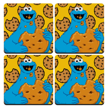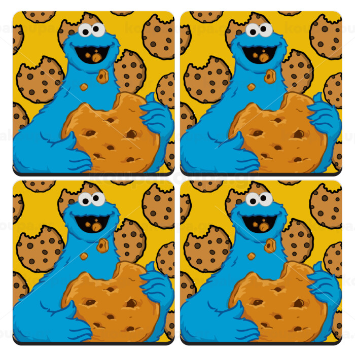 Cookie Monster, ΣΕΤ 4 Σουβέρ ξύλινα τετράγωνα (9cm)