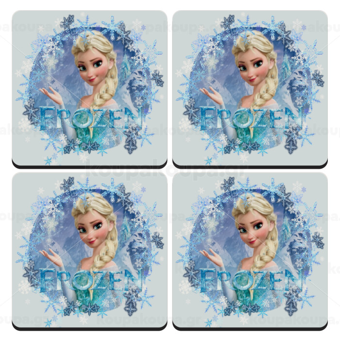 Frozen Elsa, ΣΕΤ 4 Σουβέρ ξύλινα τετράγωνα (9cm)