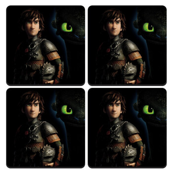 How to train your dragon Night Fury, ΣΕΤ 4 Σουβέρ ξύλινα τετράγωνα (9cm)