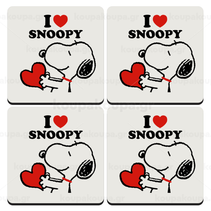 I LOVE SNOOPY, ΣΕΤ 4 Σουβέρ ξύλινα τετράγωνα (9cm)