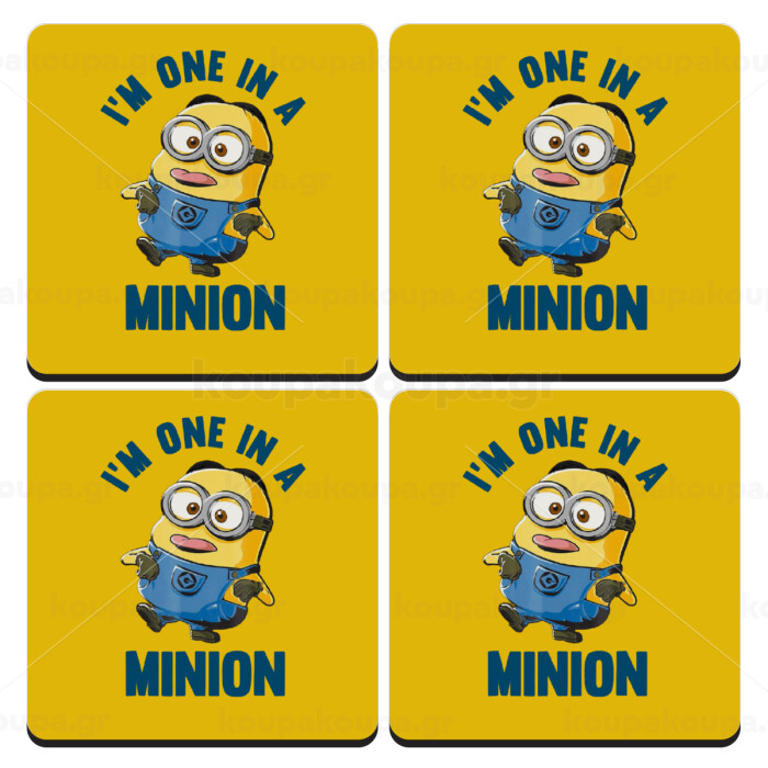 I'm one in a minion, ΣΕΤ 4 Σουβέρ ξύλινα τετράγωνα (9cm)