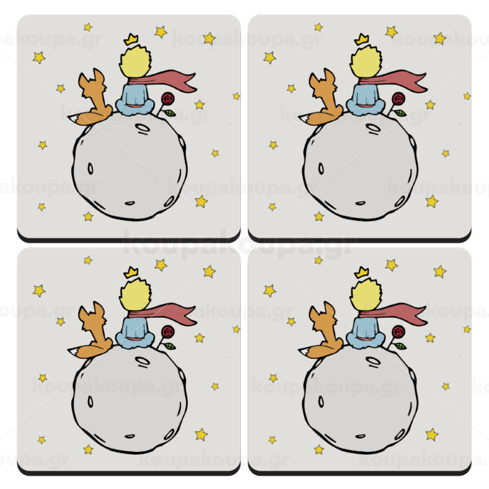 Little prince, ΣΕΤ 4 Σουβέρ ξύλινα τετράγωνα (9cm)