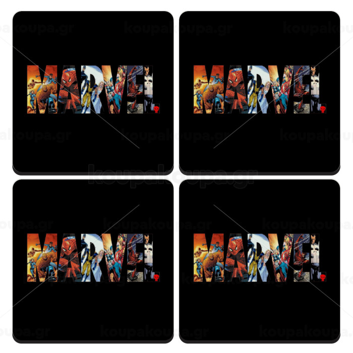 MARVEL Black, ΣΕΤ 4 Σουβέρ ξύλινα τετράγωνα (9cm)