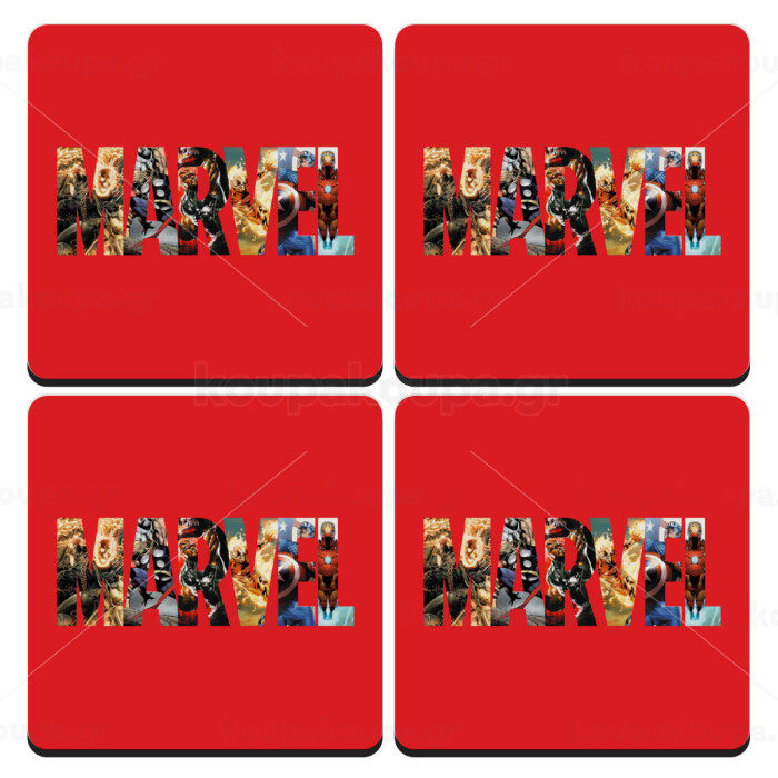 MARVEL Red, ΣΕΤ 4 Σουβέρ ξύλινα τετράγωνα (9cm)