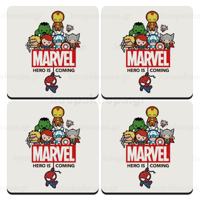 MARVEL, ΣΕΤ 4 Σουβέρ ξύλινα τετράγωνα (9cm)