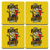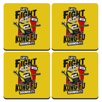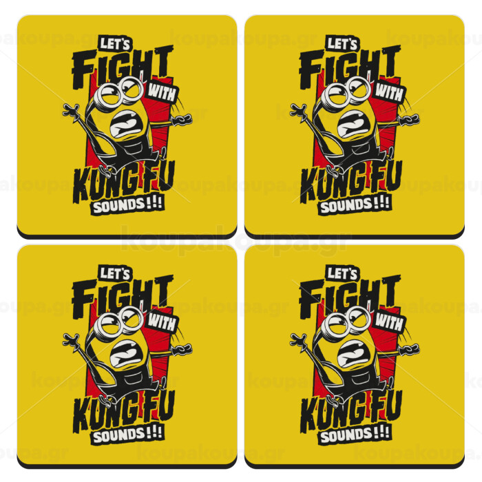Minions Let's fight with kung fu sounds, ΣΕΤ 4 Σουβέρ ξύλινα τετράγωνα (9cm)