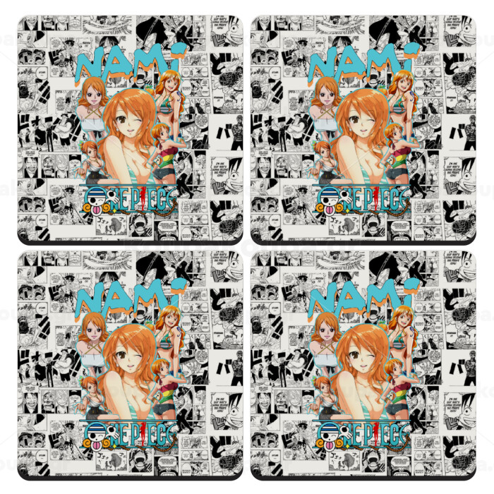 Nami One Piece, ΣΕΤ 4 Σουβέρ ξύλινα τετράγωνα (9cm)