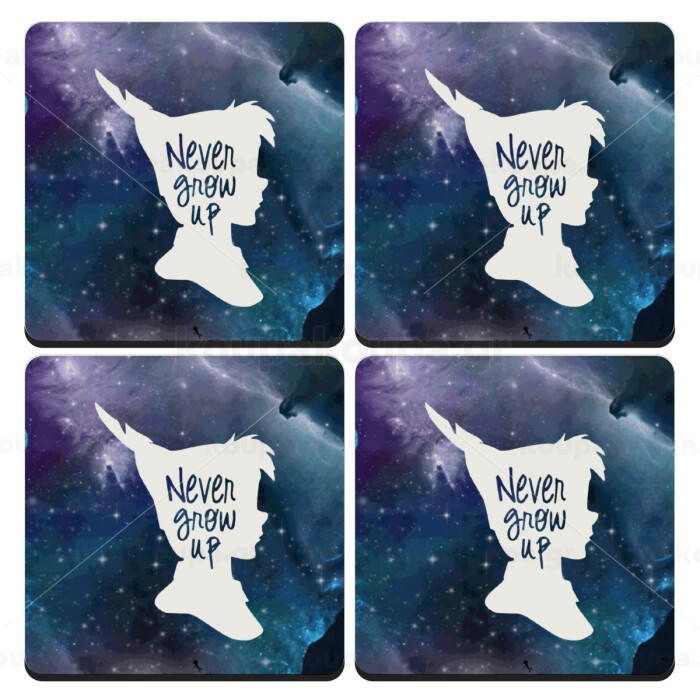 Never Grow UP, ΣΕΤ 4 Σουβέρ ξύλινα τετράγωνα (9cm)