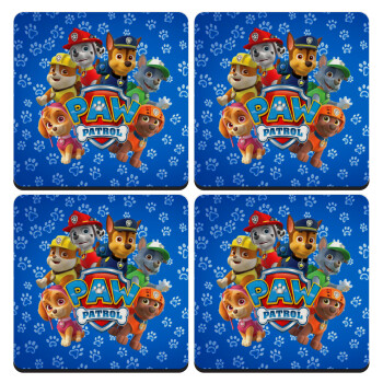 PAW patrol, ΣΕΤ 4 Σουβέρ ξύλινα τετράγωνα (9cm)