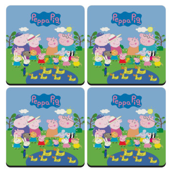 Peppa pig Family, ΣΕΤ 4 Σουβέρ ξύλινα τετράγωνα (9cm)