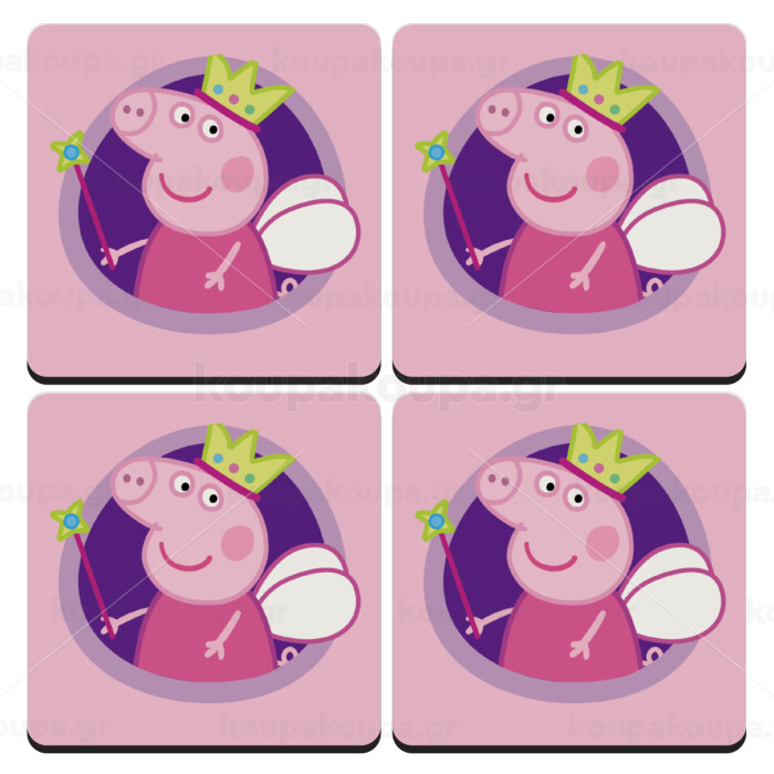 Peppa pig Queen, ΣΕΤ 4 Σουβέρ ξύλινα τετράγωνα (9cm)