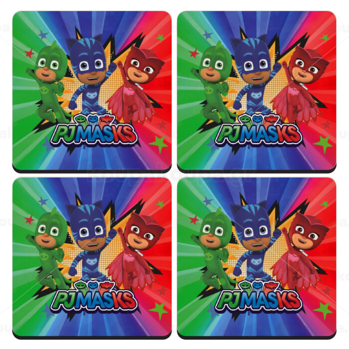 PJ masks, ΣΕΤ 4 Σουβέρ ξύλινα τετράγωνα (9cm)