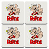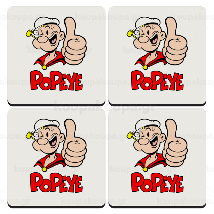 Popeye the sailor man, ΣΕΤ 4 Σουβέρ ξύλινα τετράγωνα (9cm)
