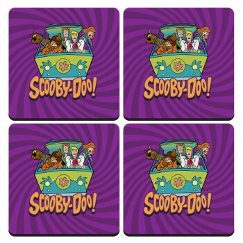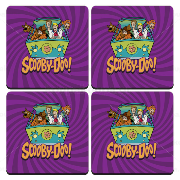 Scooby Doo car, ΣΕΤ 4 Σουβέρ ξύλινα τετράγωνα (9cm)