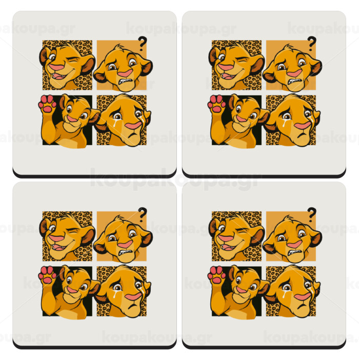 Simba, lion king, ΣΕΤ 4 Σουβέρ ξύλινα τετράγωνα (9cm)