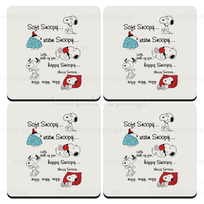Snoopy manual, ΣΕΤ 4 Σουβέρ ξύλινα τετράγωνα (9cm)