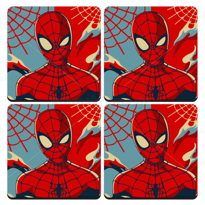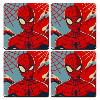 Spiderman kid, ΣΕΤ 4 Σουβέρ ξύλινα τετράγωνα (9cm)