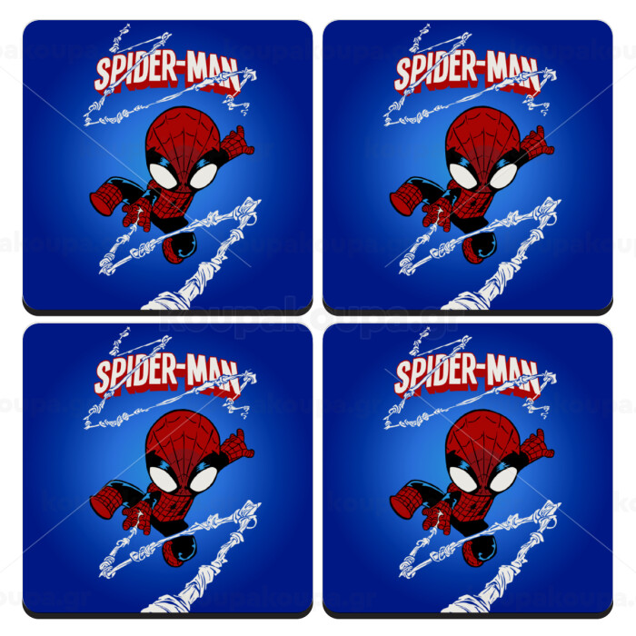 Spiderman kid, ΣΕΤ 4 Σουβέρ ξύλινα τετράγωνα (9cm)