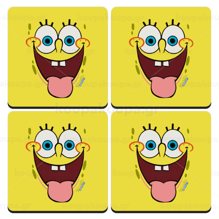 SpongeBob SquarePants smile, ΣΕΤ 4 Σουβέρ ξύλινα τετράγωνα (9cm)