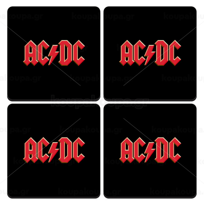AC/DC, ΣΕΤ 4 Σουβέρ ξύλινα τετράγωνα (9cm)