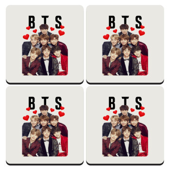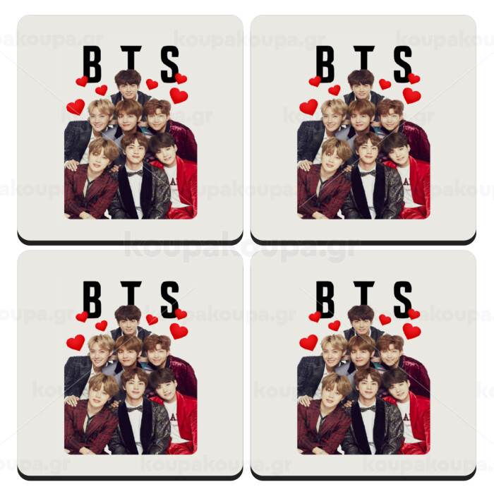 BTS hearts, ΣΕΤ 4 Σουβέρ ξύλινα τετράγωνα (9cm)