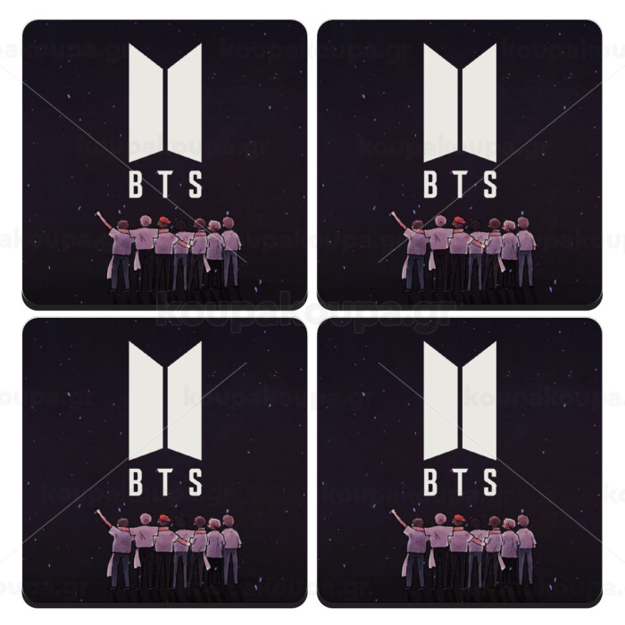 BTS, ΣΕΤ 4 Σουβέρ ξύλινα τετράγωνα (9cm)