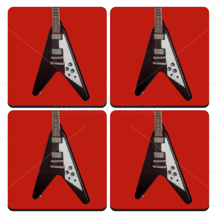 Guitar flying V, ΣΕΤ 4 Σουβέρ ξύλινα τετράγωνα (9cm)