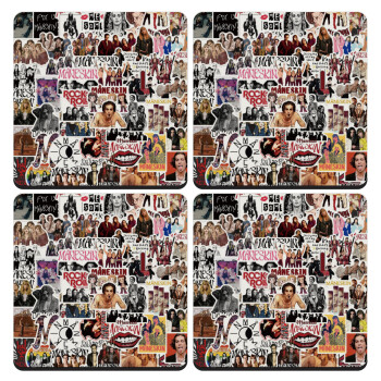 Maneskin stickers, ΣΕΤ 4 Σουβέρ ξύλινα τετράγωνα (9cm)