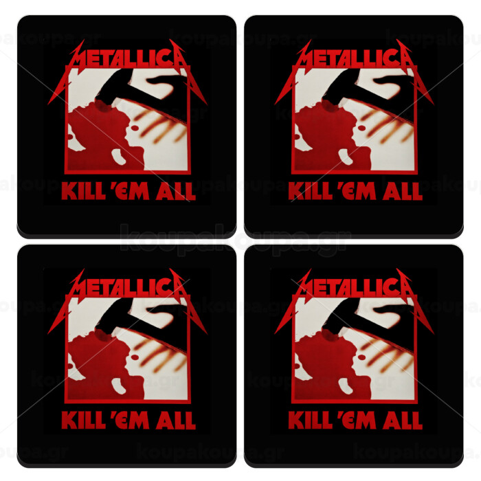 Metallica Kill' em all, ΣΕΤ 4 Σουβέρ ξύλινα τετράγωνα (9cm)
