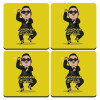 PSY - GANGNAM STYLE, ΣΕΤ 4 Σουβέρ ξύλινα τετράγωνα (9cm)